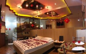 Poltrona erótica, área externa, Smart TV 40", wi-fi, som com Bluetooth, ar-condicionado e frigobar.